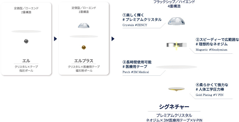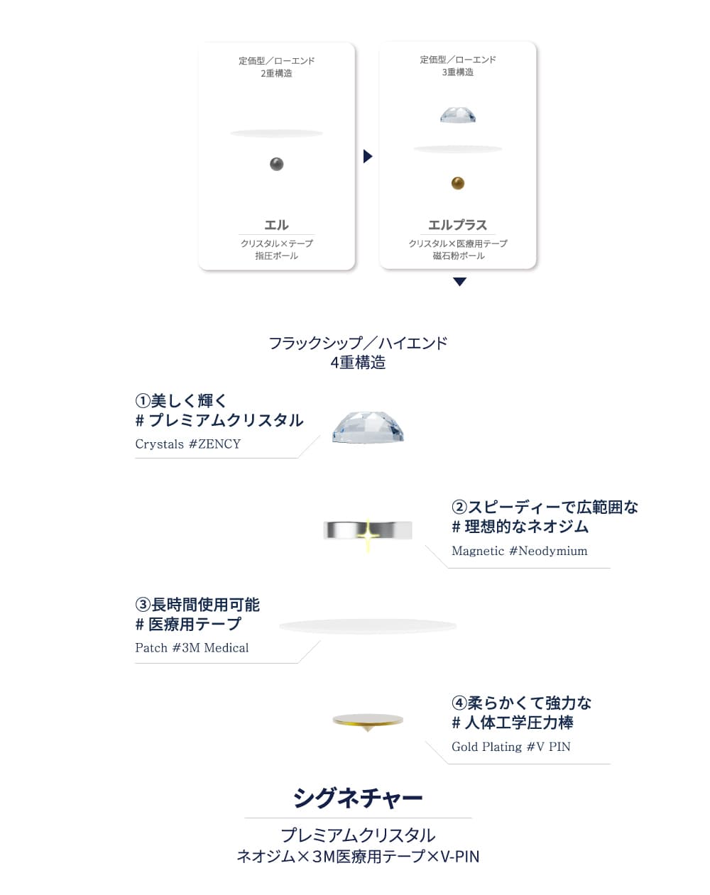 プレミアムクリスタルと2重磁極方式を使用。 手軽に耳につけて【ジュエリーと指圧】を同時に!