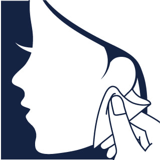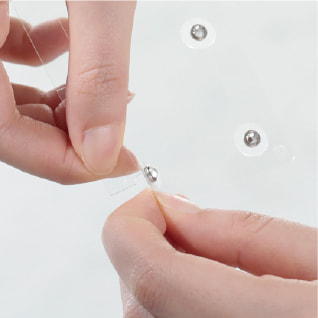 2.透明シートの横の点線を剥がしてパッチを取り、両耳に装着して下さい。