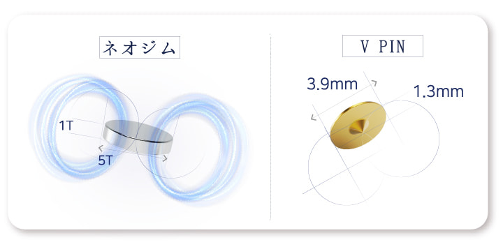 ネオジムの耳の使用に合わせて研究開発された、理想的なガウス(G)との一定の極の方向性で広範囲な刺激を与えてます。V-PINは人間工学設計により集中した刺激が可能で、剝がれにくい丈夫な耐久性を持っています。